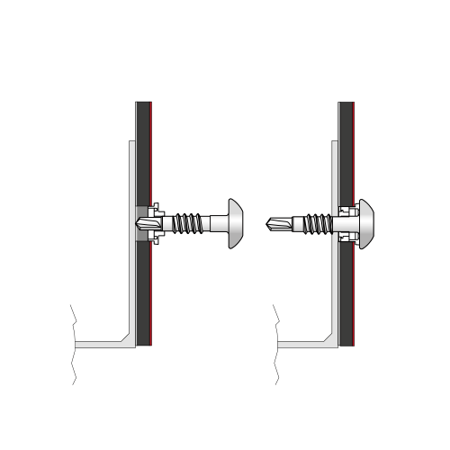 We recommend the tapered special bit hexalobular drive TX25W-1/4″/Cx25 for force fit in the fastener head. To form fixed points , we recommend pre-drilling a Ø 4.0 mm hole in the panel.