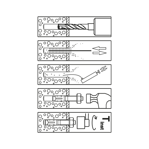 - Outdoors, including in industrial atmosphere and coastal environentsFor embedment of medium heavy to heavy fixings such as pillars, metal structures and wooden structures